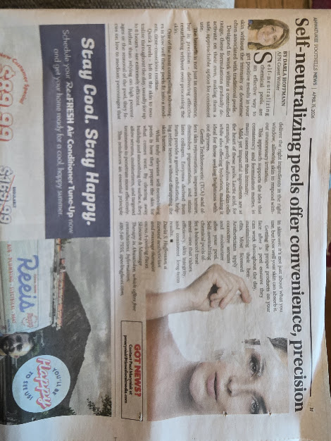 Self-Neutralizing chemical peels are effective and non-invasive skin care treatments for anti-aging. Call 480-540-7555 to schedule your PCA Skin peel by A-Peeling Faces Skin Care & Massage Therapy. Read more about it in my column in today’s Ahwatukee Foothills News